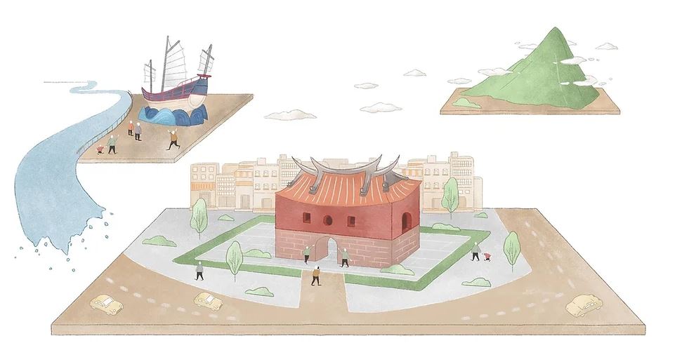 ,甕城以北有條保護城牆的護城河;而護城河北方,則為迎接官員的接官亭。.png)