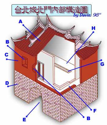 - 日本當局雖然拆廢了台北城的城牆,但留下東、西、南、北,以及小南等五個城門,以資紀念。可惜這五個城門在國民黨來臨後,僅有北門還留下原貌。台北刑務所,整座監獄見證殖民起訖,是日方勞役受刑人拆除清代台北城牆石所建立,其中包括監獄圍牆、建築物基石,以及佈滿監獄四周的「下水道系統」等。具有百年歷史的「下水道」,其價值不僅在於是清代台北城牆石所建