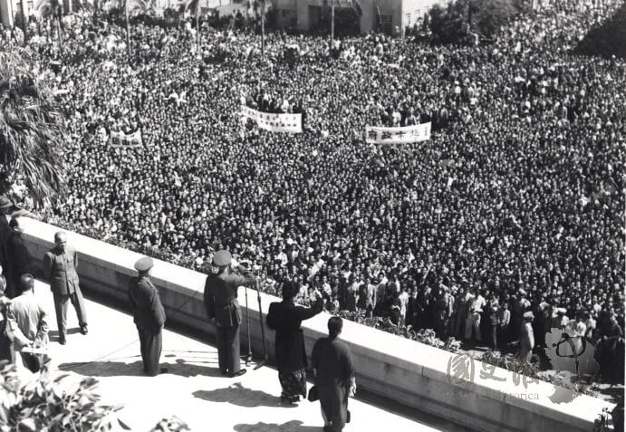 蔣介石伉儷於台北中山堂接受民眾歡呼
