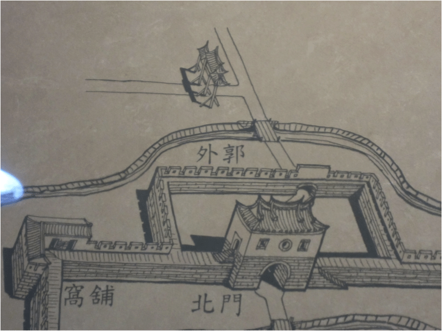 ,甕城以北有條保護城牆的護城河;而護城河北方,則為迎接官員的接官亭。.png)