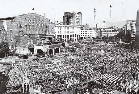 蔣介石伉儷於台北中山堂接受民眾歡呼