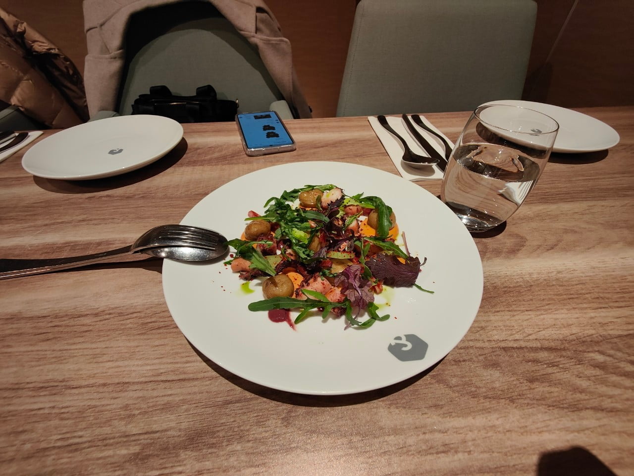 但此搭配搭上新鮮章魚肉片和主廚自豪的特製沙拉醬